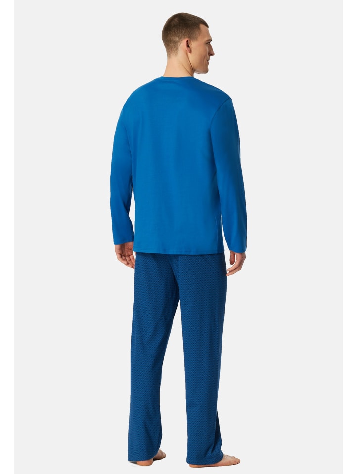 Этот пижамный комплект обеспечивает максимальную свободу движений благодаря удобному крою. Он состоит из однотонной футболки с V-образным вырезом и брюк с вневременным минималистичным дизайном. Практичный нагрудный карман - его отличительная особенность. - Комплект включает футболку с длинными рукавами и брюки - Изготовлен из 100% высококачественного хлопка - Высокий комфорт при ношении Материал: 100% хлопок