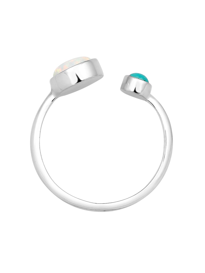 Это потрясающее регулируемое кольцо изготовлено вручную из высококачественного серебра 925 пробы и благодаря своему современному геометрическому дизайну станет незаменимым аксессуаром для каждой модницы. Серебряное кольцо, украшенное сияющим синтетическим опалом и элегантным камнем хаулит, гармонично облегает палец, дополняя каждое движение руки и являясь вневременным украшением. Приобретите это серебряное украшение в качестве эффектного аксессуара и добавьте нотку летней легкости в свою шкатулку с драгоценностями! Открытое кольцо можно отрегулировать под размеры 52-58. Цвет и текстура камня хаулит могут отличаться от изображения, так как это натуральный продукт. Поэтому каждое украшение уникально.