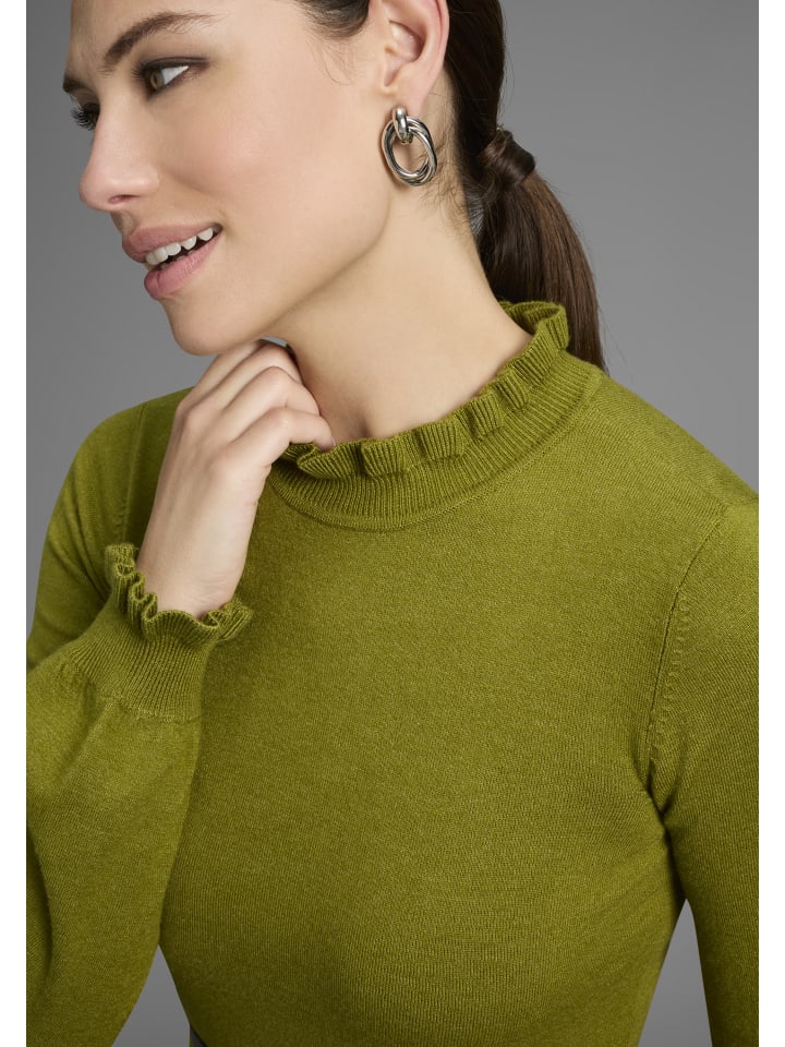 Будь то повседневный или шикарный образ - с этим трикотажным платьем от Laura Scott стильный наряд практически гарантирован. Оно подчеркивает фигуру и имеет короткую длину. Длинные рукава отделаны оборками. Платье адаптируется к форме тела и движется вместе с вами.