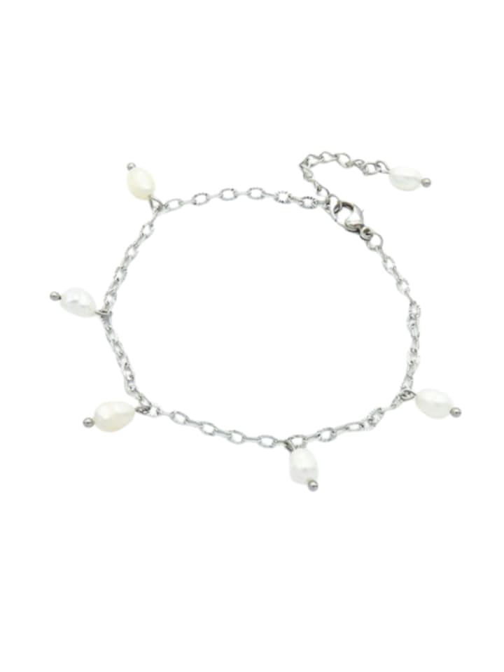 Красивый браслет в стиле бохо с белыми пресноводными жемчужинами и изящными звеньями цепочки, изготовленный из высококачественной нержавеющей стали 316L, доступен в золотом и серебряном цвете | Материал: нержавеющая сталь 316L, пресноводные жемчужины | Длина: 200 мм | Ширина: 5 мм | Цвет: золотой или серебряный, белый | Застежка: карабин | Количество: 1 шт.