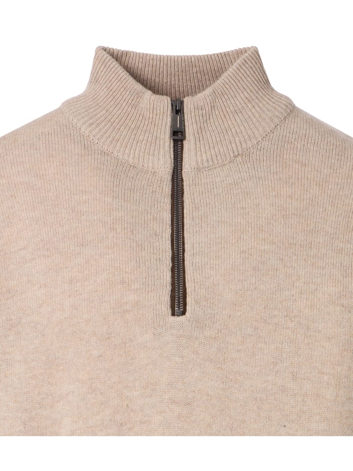Этот вязаный пуловер впечатляет своей вневременной элегантностью и приятным теплом. Тонкая вязка создает изысканный вид, а высокий воротник с молнией добавляет современный штрих. Носите его поверх рубашки или отдельно, этот пуловер идеально подходит для создания стильных образов в прохладные дни. - Комфортная овечья шерсть - Стандартный крой - Воротник-стойка с молнией - Классический дизайн - Высокий комфорт при ношении - Материал: - 80% шерсть - 20% другие материалы