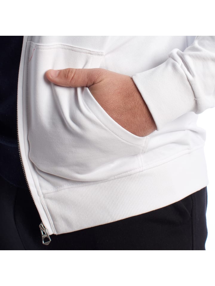 Мужская толстовка имеет переднюю молнию, длинные рукава с плотно прилегающими манжетами, эластичный низ, который удобно облегает тело, капюшон на шнурке для стильного сохранения тепла головы и два боковых кармана, идеально подходящих для мелких предметов.