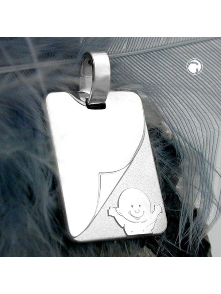 Привет, я здесь! Прекрасный подарок от счастливого папы счастливой маме в честь рождения ребенка! Этот квадратный кулон из цельного серебра со скругленными углами украшен очаровательным изображением малыша. Умело выполненный кулон выглядит так, будто поднимается ткань, открывая радостно протягивающую ручки малышку. Рельефный эффект и дополнительная гравировка позволяют искусно отполированному изображению малыша красиво выделяться на текстурированной поверхности. Этот цельный кулон идеально подходит для гравировки как с лицевой, так и с обратной стороны, что делает его прекрасным персонализированным подарком в память об этом особенном дне, когда в мире появился новый малыш. Размеры: 19 x 14 мм, внутреннее ушко: 5 x 3 мм, Вес: 3,3 г, Сплав: серебро 925 пробы, Цена за штуку