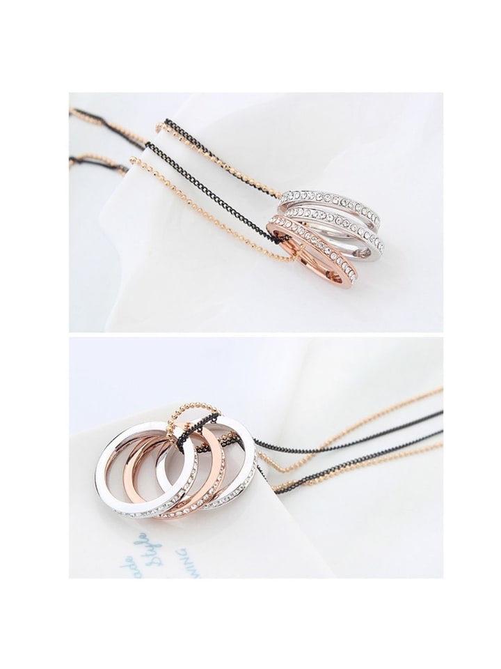 Очаровательное колье для женщин с исключительным многосоставным кулоном. Кольцеобразные элементы кулона чередуются между розовым золотом и серебром и инкрустированы сверкающими прозрачными кристаллами. Длина колье: 45 см | Размер кулона: 2,6 x 1,4 см (высота x ширина) | Материал: Колье: латунь / Кулон: сплав с родиевым покрытием - устойчив к потускнению и обеспечивает особенно блестящие кристаллы. Красивое, классическое украшение на любой случай. Высокое качество и элегантное исполнение - для исключительного комфорта. Особенно подходит для женщин. Но это потрясающее колье также прекрасно будет смотреться на детях (девочках и мальчиках), а также на мужчинах, следящих за модой. Инструкции по уходу: Чтобы колье и кристаллы долгое время оставались сияющими и блестящими, мы рекомендуем следующее: Избегайте прямого контакта украшения с водой. Снимайте колье перед принятием душа, мытьем или плаванием. Пожалуйста, не наносите на женское колье духи, лак для волос, дезодорант, мыло или лосьоны - это может повредить украшение, вызвать изменение цвета, разрушить покрытие и уменьшить блеск кристаллов. Бренд: Bungsa - Ваш ювелирный магазин высококачественных украшений для женщин и мужчин.