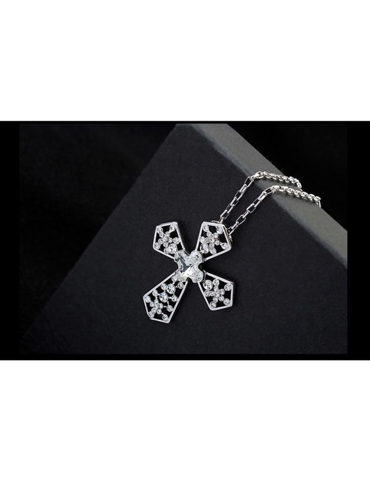 Потрясающее женское колье серебристого цвета с большим ажурным крестом-подвеской. Подвеска украшена крупным прозрачным кристаллом в форме креста и множеством сверкающих прозрачных стразов. Волшебный аксессуар для многих случаев! Длина колье: 45 см | Размер подвески: 4,8 x 4 см (высота x ширина) | Материал: Колье: латунь / Подвеска: сплав с родиевым покрытием - устойчив к потускнению и обеспечивает исключительно блестящие кристаллы. Красивое, классическое украшение на любой случай. +++ Высокое качество и элегантное исполнение - для исключительного комфорта. +++ Особенно подходит для женщин. Но это потрясающее колье также будет отлично смотреться с детьми (девочками и мальчиками), а также с мужчинами, следящими за модой. Инструкции по уходу: Чтобы колье и кристаллы долго сохраняли свой блеск и сияние, мы рекомендуем следующее: Избегайте прямого контакта украшения с водой. Снимайте колье перед принятием душа, мытьем или плаванием. Пожалуйста, не наносите на женское колье духи, лак для волос, дезодорант, мыло или лосьоны - это может повредить украшение, вызвать изменение цвета, разрушить покрытие и уменьшить блеск кристаллов. Бренд: Bungsa - Ваш ювелирный магазин высококачественных украшений для женщин и мужчин.