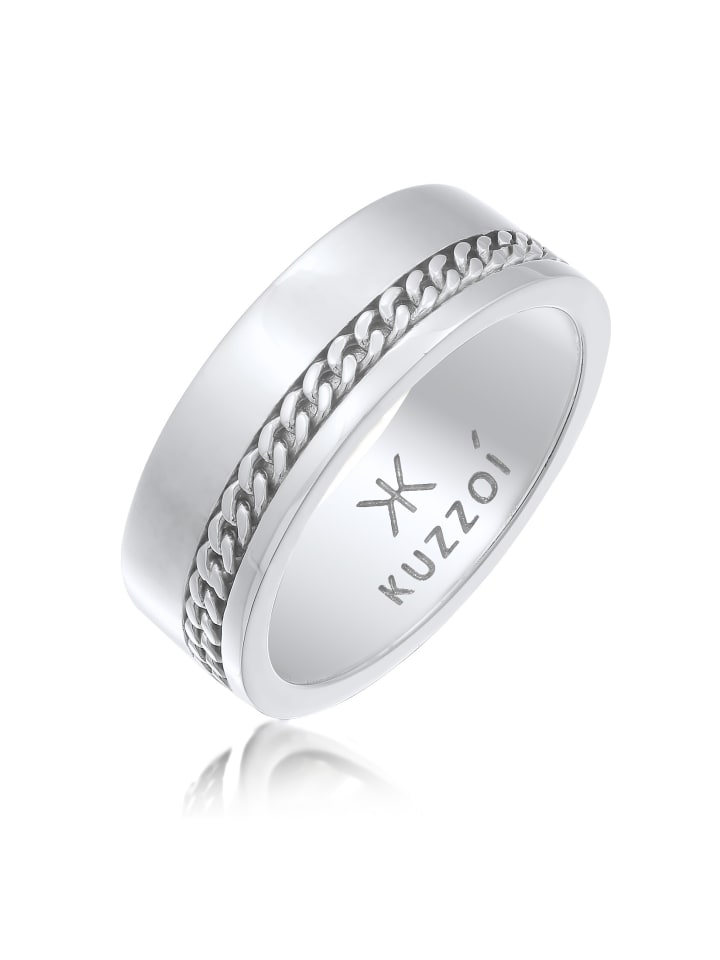 Это мужское кольцо шириной 8 мм, изготовленное вручную из цельного серебра 925 пробы, благодаря своему лаконичному дизайну станет идеальным завершением любого образа. Его изящный силуэт с элементом в виде цепочки типа «бордюр» добавит завершающий штрих к спортивно-элегантному мужскому наряду. Простое и сдержанное, с мужественными деталями, это мужское украшение подчеркнет вашу индивидуальность.