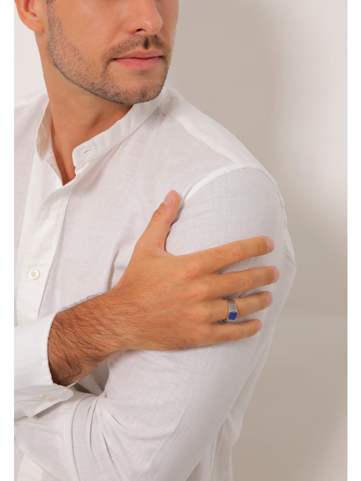 Это традиционное кольцо-печатка изготовлено вручную из высококачественного серебра 925 пробы и отличается стильным дизайном. Квадратная форма пластинки с камнем содалита придает изделию роскошный вид. Модная отделка подчеркнута оксидированными деталями. Благодаря своему лаконичному дизайну и мужественной элегантности, этот мужской аксессуар действительно привлекает внимание.