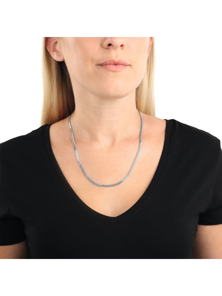 Это колье длиной 50 см подойдет как женщинам, так и мужчинам. Изящно выполненные звенья в модном стиле «якорная цепочка» стильны и непринужденны. Толщина цепочки составляет приблизительно 3,5 мм, она изготовлена из высококачественного серебра 925 пробы. Практичная застежка-карабин служит для фиксации. Легко сочетается с другими украшениями.