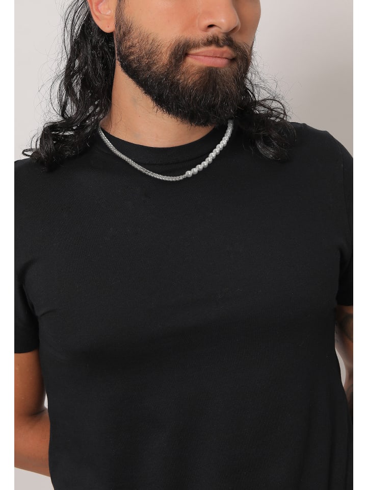 Это модное мужское жемчужное колье длиной 45 см, изготовленное из серебра 925 пробы, идеально воплощает современный винтажный жемчужный тренд. Одна половина колье выполнена из жемчуга, а другая, с ее массивным дизайном, создает стильный, базовый образ. Молодое поколение часто носит жемчужные украшения как фирменный аксессуар, обычно в сочетании с простой футболкой или черной толстовкой. Жемчуг с древних времен был символом власти и богатства. Те, кто открыт для новых стилей, найдут этот аксессуар модным повседневным украшением. Это эксклюзивное украшение поставляется в стильной подарочной коробке. Особенности: - Элегантное колье из серебра 925 пробы; - Современное украшение на любой случай; - Высокоглянцевая полировка и устойчивость к потускнению серебра; - Изготовлено по высочайшим ювелирным стандартам; - Идеальный подарок для женщины или подруги.