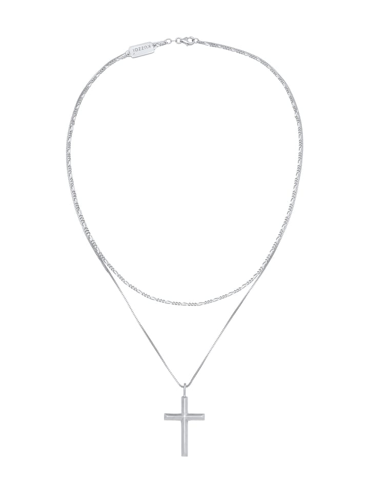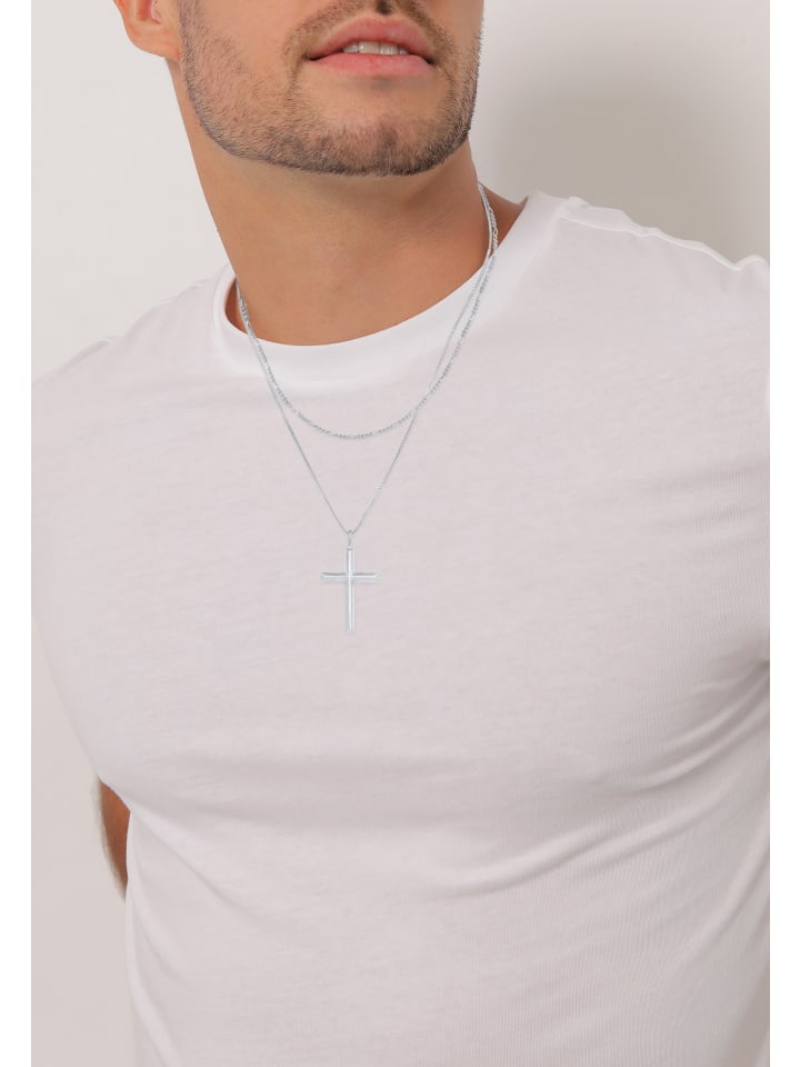 Это модное мужское многослойное колье, изготовленное вручную из цельного серебра 925 пробы, станет прекрасным акцентом благодаря подвеске в виде креста. Более короткая цепочка Фигаро длиной 50 см добавляет классический штрих. Для современного образа выделяется венецианская цепочка длиной 55 см, отличающаяся элегантным стилем и христианским символом. Превосходный аксессуар, который добавит изысканности любому мужскому наряду.