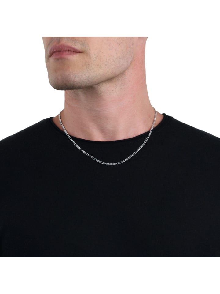 Это ожерелье длиной 50 см подходит как женщинам, так и мужчинам. Тщательно выполненные звенья в модном стиле Фигаро стильные и непринужденные. Цепочка имеет толщину около 3 мм и изготовлена из высококачественного серебра 925 пробы. Она оснащена практичной пружинной застежкой. Ее легко сочетать с другими украшениями.