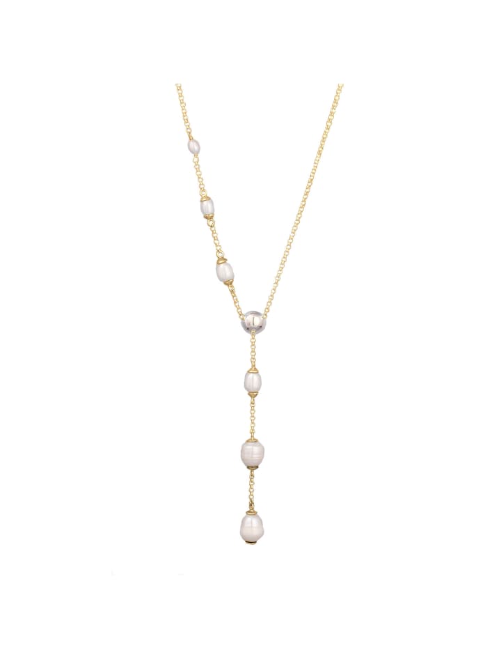 Элегантное Y-образное ожерелье с пресноводными жемчужинами, покрытое золотом и изготовленное из серебра 925 пробы. Белые жемчужины придают изделию нежный, женственный вид. Оснащено застежкой-карабином для надежной фиксации. - Дополнит ваш гардероб - Подходит ко многим стилям - Хорошо сидит
