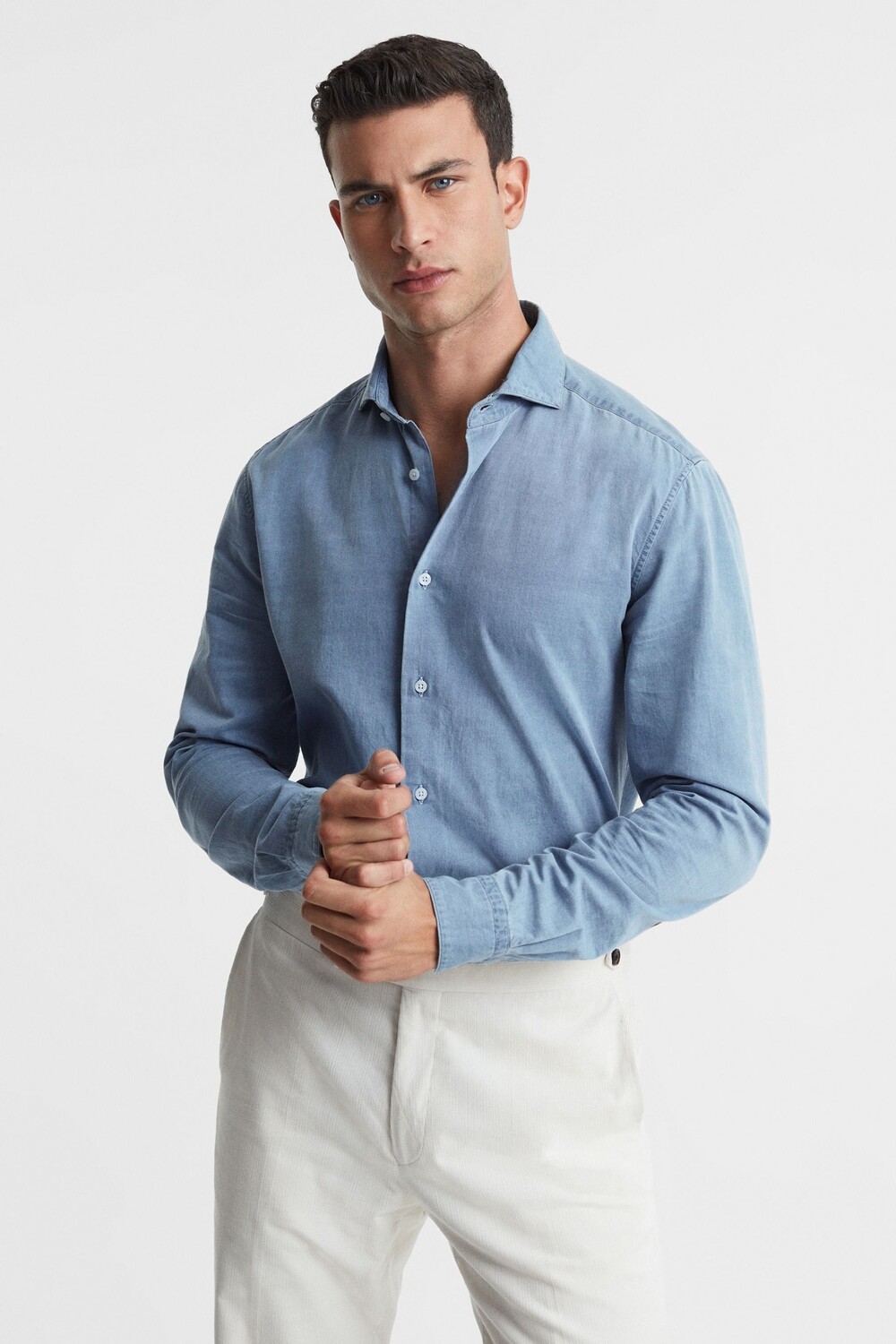 Рубашка Draper из шамбре с эффектом потертости Reiss, синий 21 939₽