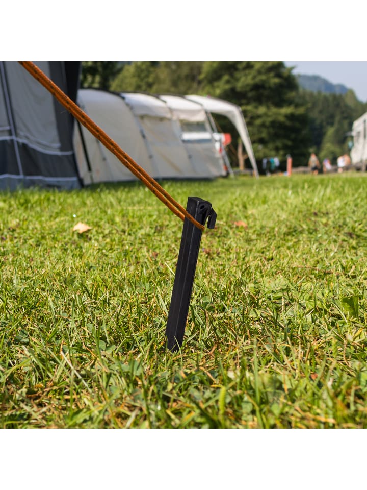 Если для вас важна надежная фиксация палатки на мягкой и песчаной почве, вам стоит выбрать этот набор из 64 колышков. Изготовленные из легкого пластика, эти длинные колышки обеспечивают прочное сцепление даже в ветреную погоду. Они особенно подходят для крепления палаток, тентов, пляжных навесов и многого другого. Петли облегчают натяжение веревок, а благодаря заостренному концу колышки легко втыкаются в землю.