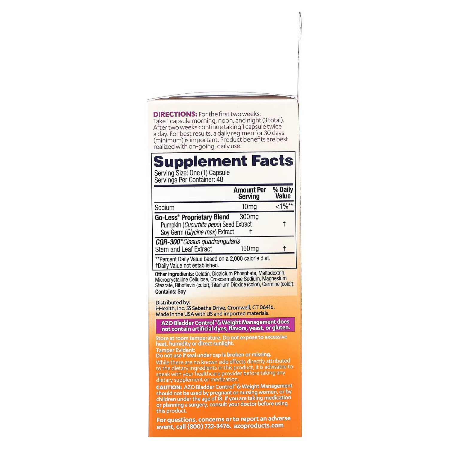Смесь натуральных ингредиентов в составе AZO Bladder Control & Контроль веса поддерживает мочевой пузырь двумя способами, чтобы вы могли чувствовать себя под контролем днем и ночью.