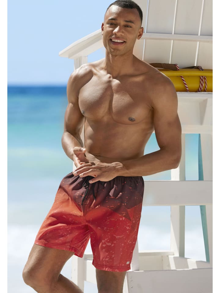 Плавки HIS с графическим градиентом. Эластичный пояс на шнурке и боковые карманы. Внутренние трусы с небольшим карманом. Мягкая микрофибра из переработанного материала.