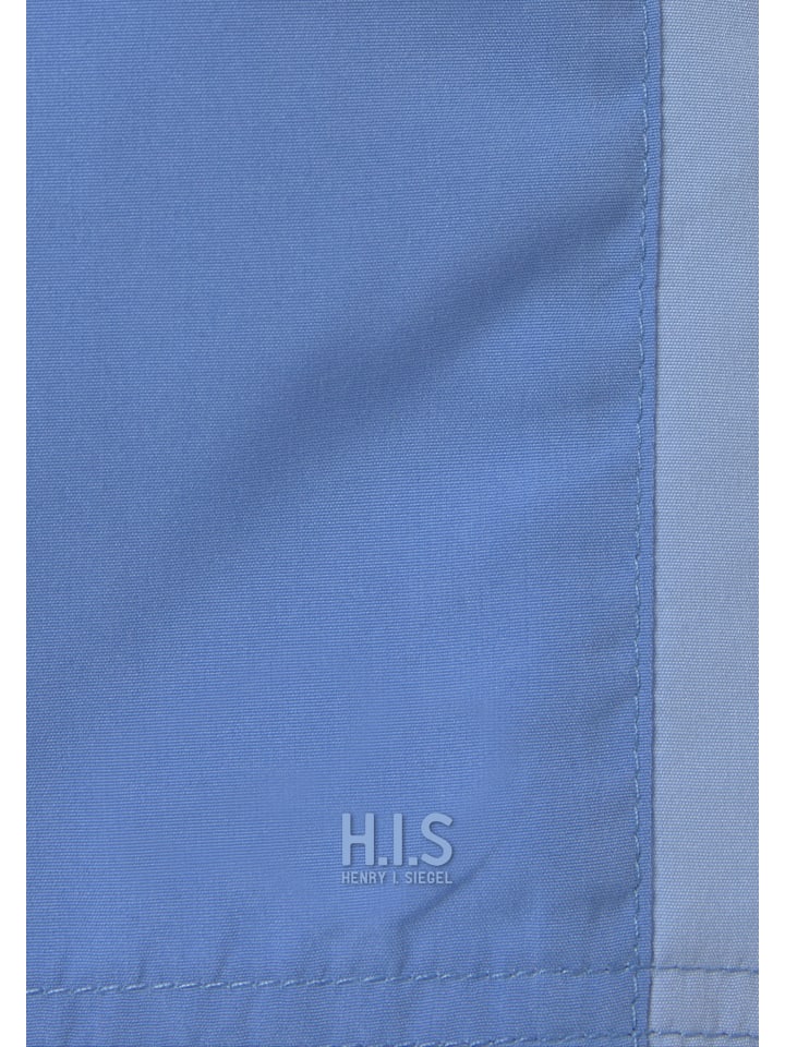 Плавки HIS с контрастными полосками. Эластичный пояс на шнурке с видимым кулиской. Задний карман на липучке. Сетчатые трусы с внутренним карманом. Прямой крой. Мягкая микрофибра с переработанным полиэстером.