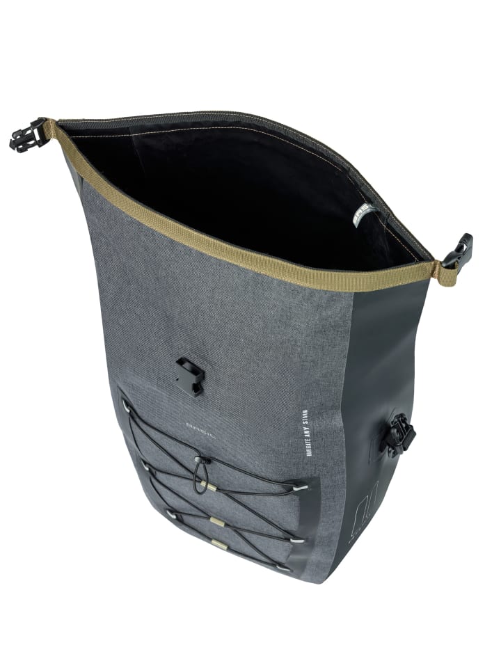 Сумка изготовлена из высококачественной водонепроницаемой ткани (IPX3). Ее функциональная конструкция позволяет легко перевозить все необходимое. Все продумано для максимального удобства переноски ваших вещей. Благодаря регулируемому эластичному шнуру в сумке поместится велосипедный шлем, а застежка-рулон позволяет легко закрепить сумку. Застежка-рулон может крепиться тремя разными способами. Едете в темноте? Нет проблем! Благодаря светоотражающим логотипам Basil с трех сторон вы будете хорошо видны даже в условиях недостаточного освещения. Таким образом, вы всегда будете хорошо экипированы на дороге.