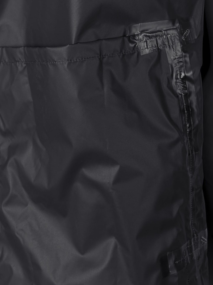 Легкая, компактная дождевая куртка, упакованная в удобный чехол. Куртка имеет капюшон, молнию, скрытую складкой, и принт на груди и рукавах. Также имеются практичные карманы на молнии и эластичные манжеты.