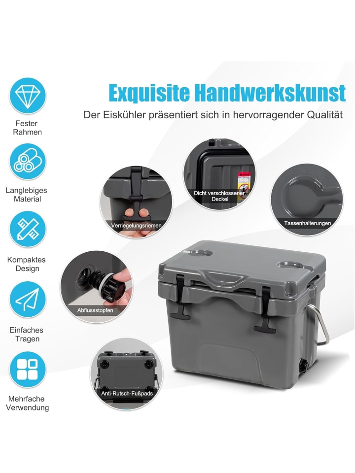 Благодаря своим превосходным характеристикам и неразрушимой конструкции, изготовленной методом ротационного формования, этот холодильник, несомненно, станет отличным помощником на открытом воздухе. Изготовленный из высококачественного полиэтилена и изоляционных материалов, этот 15-литровый холодильник нетоксичен и может сохранять продукты, напитки и фрукты холодными в течение 3-5 дней. Благодаря своей портативной конструкции, этот холодильник можно использовать в различных ситуациях, таких как барбекю, пикники, рыбалка, кемпинг или автомобильные поездки. Его также можно использовать для сохранения продуктов теплыми. Этот холодильник оснащен двумя подстаканниками, защелками, запирающейся крышкой, ручкой из нержавеющей стали, сливной пробкой и ножками. Все эти продуманные детали делают его незаменимым инструментом в невыносимо жаркое лето.