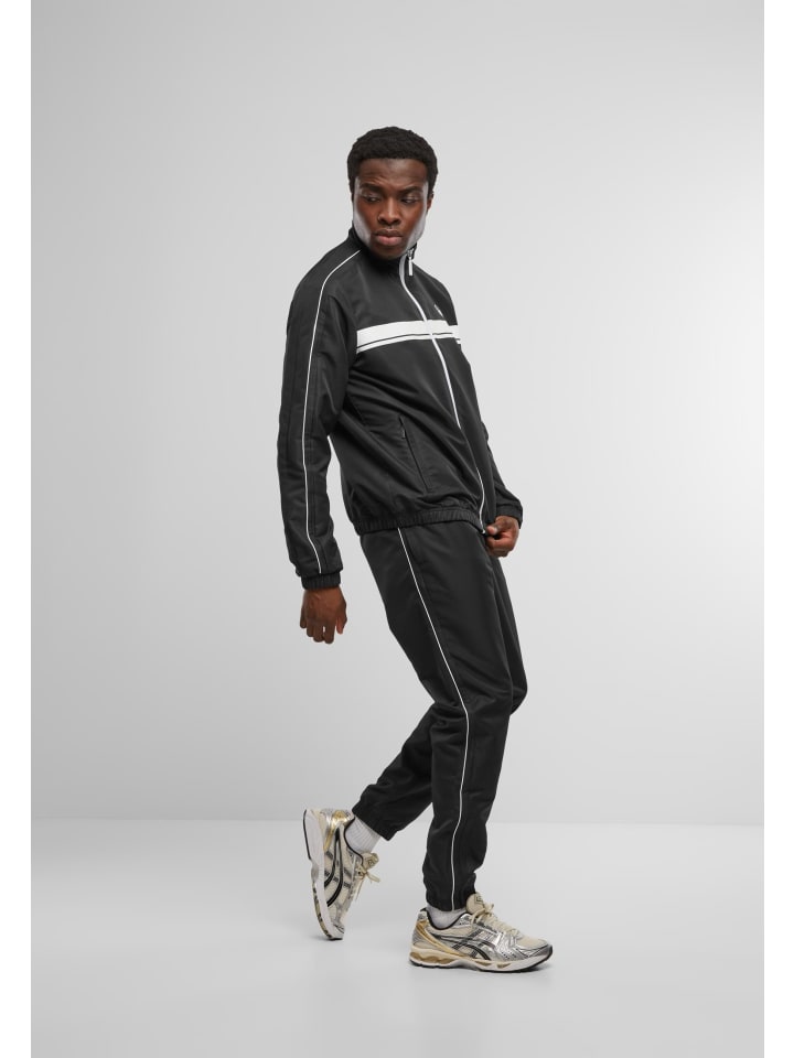 Этот спортивный костюм, идеально подходящий в качестве универсального повседневного наряда, имеет приталенный крой и стандартную длину, создавая спортивный силуэт для активных дней. Верхняя часть имеет воротник-стойку и молнию по всей длине, длинные втачные рукава и контрастные полосы вдоль рукавов, а эластичные ребристые манжеты и нижний край обеспечивают удобную посадку. Гладкая полиэстеровая ткань снаружи легкая и обеспечивает свободу движений, а брюки повторяют приталенный крой с удобным поясом и прямыми штанинами. Ненавязчивые детали с логотипом подчеркивают комплект; он прост в уходе и подходит для повседневной носки.