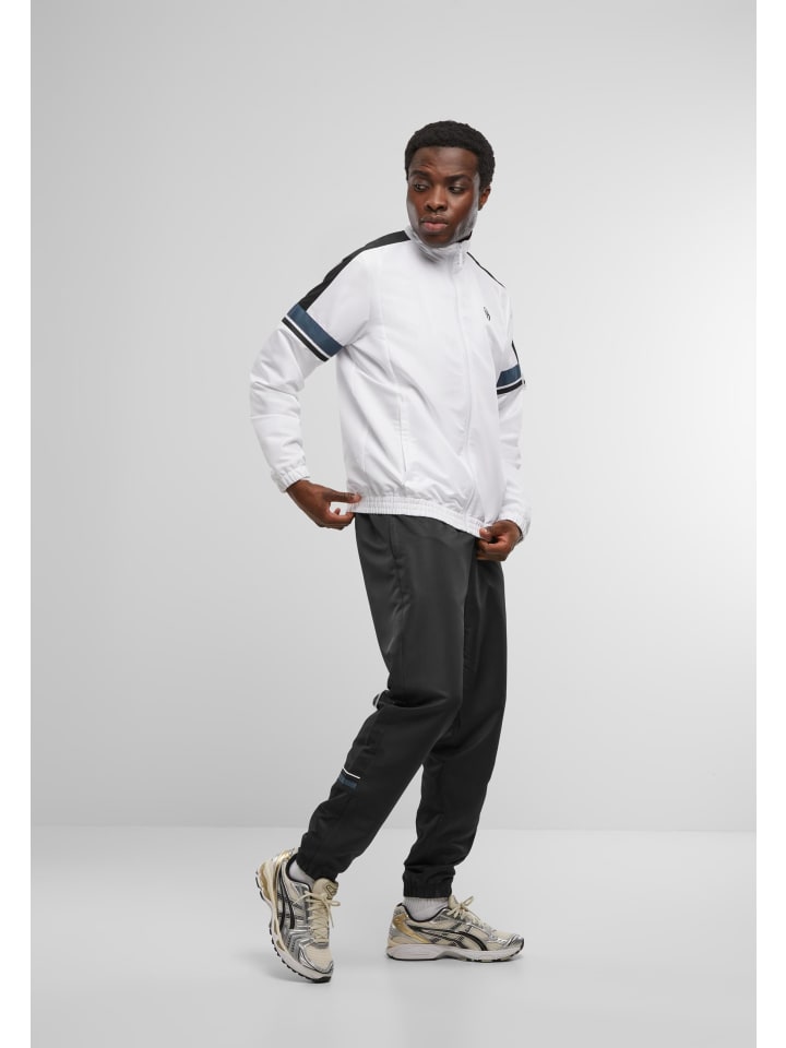 Спортивный костюм для повседневной носки и тренировок с облегающим силуэтом, стандартной длиной и чистым, спортивным видом, идеально подходит в качестве повседневного слоя. Легкая полиэстеровая внешняя ткань обеспечивает ветрозащиту и простоту в уходе, а молния по всей длине и высокий воротник-стойка обеспечивают защиту и регулируемый комфорт. Длинные втачные рукава заканчиваются эластичными манжетами, а нижний край также эластичный, что улучшает посадку. Простые боковые карманы на куртке и брюках добавляют функциональности, а прямые тренировочные брюки имеют облегающий крой и сохраняют форму внизу штанин. Инструкция по уходу: машинная стирка, простой уход.