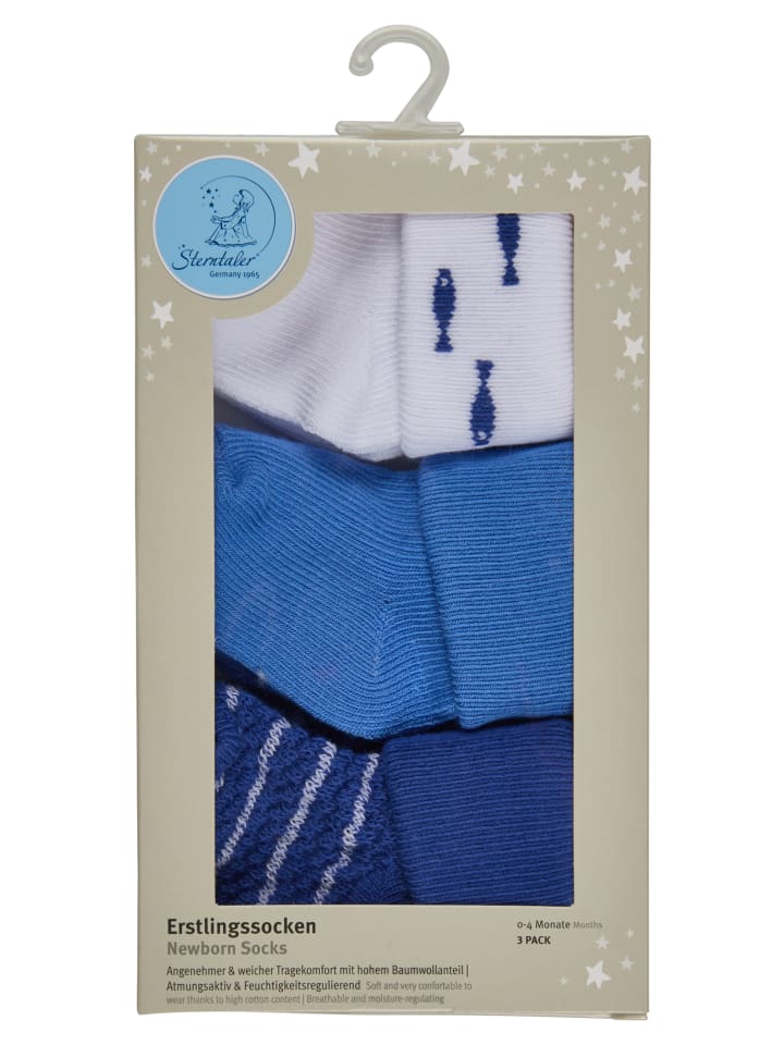 Sterntaler Детские носочки, 3 шт., с рисунком рыбок, белые