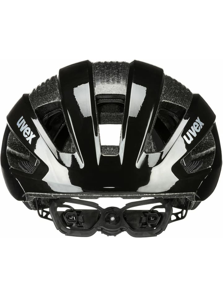 Легкий шоссейный велосипедный шлем Uvex Rise черного цвета с двойной литой конструкцией корпуса, обеспечивающей защиту снизу и сзади. Материал: 100% полиэстер.