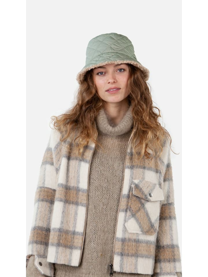 Водоотталкивающая панама оливкового цвета. Регулируемая посадка, подходит для разных размеров головы. Длина полей около 6 см.
