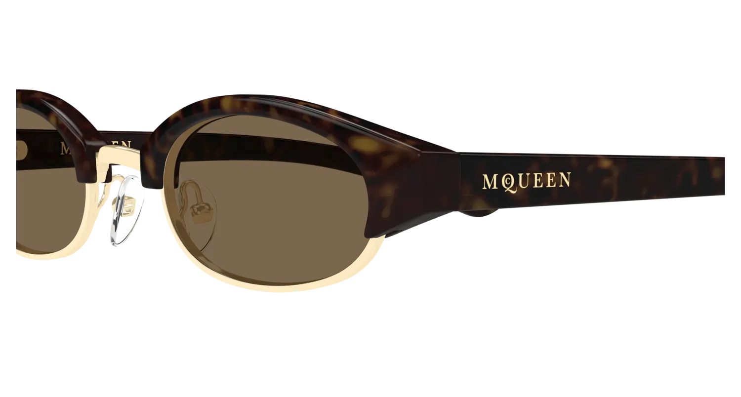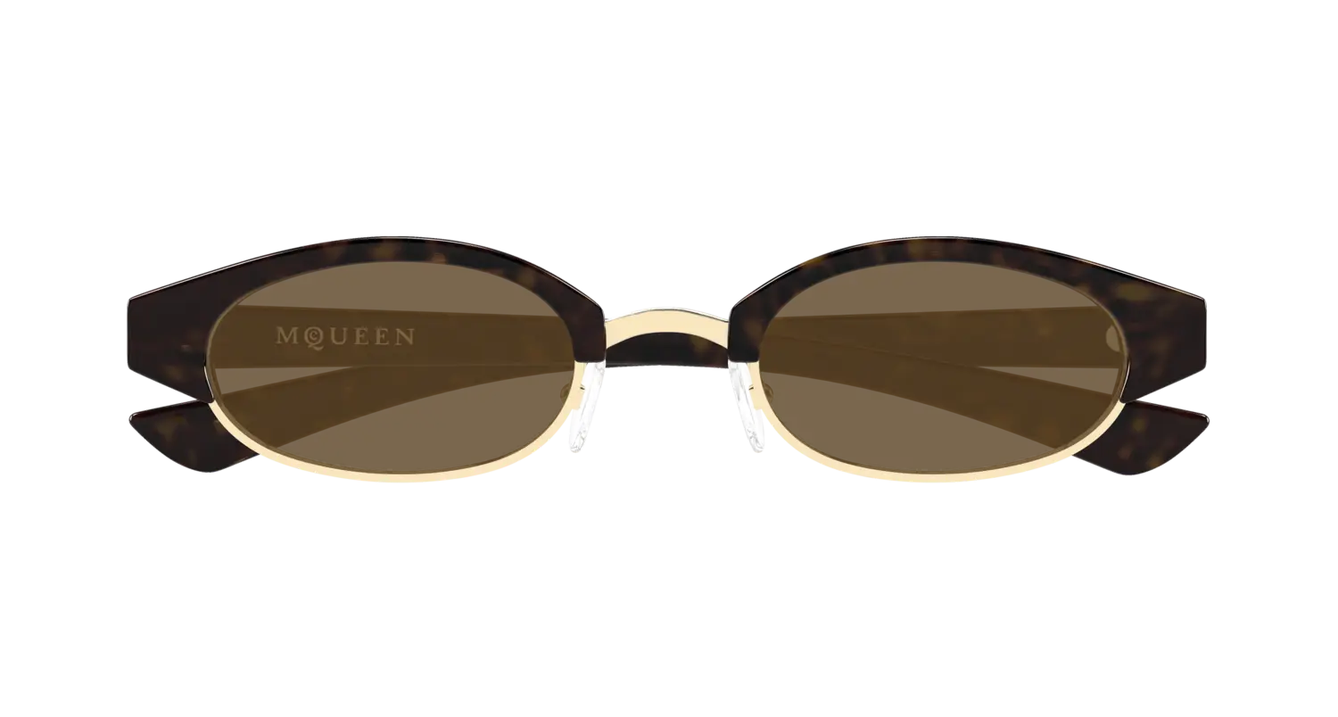 ALEXANDER MCQUEEN AM0534S СОЛНЦЕЗАЩИТНЫЕ - смелая и современная модель в тёплой Havana-окраске, выполненная из лёгкого пластика для комфортного ношения. Идеальна для тех, кто ценит дерзкий стиль и яркое первое впечатление.