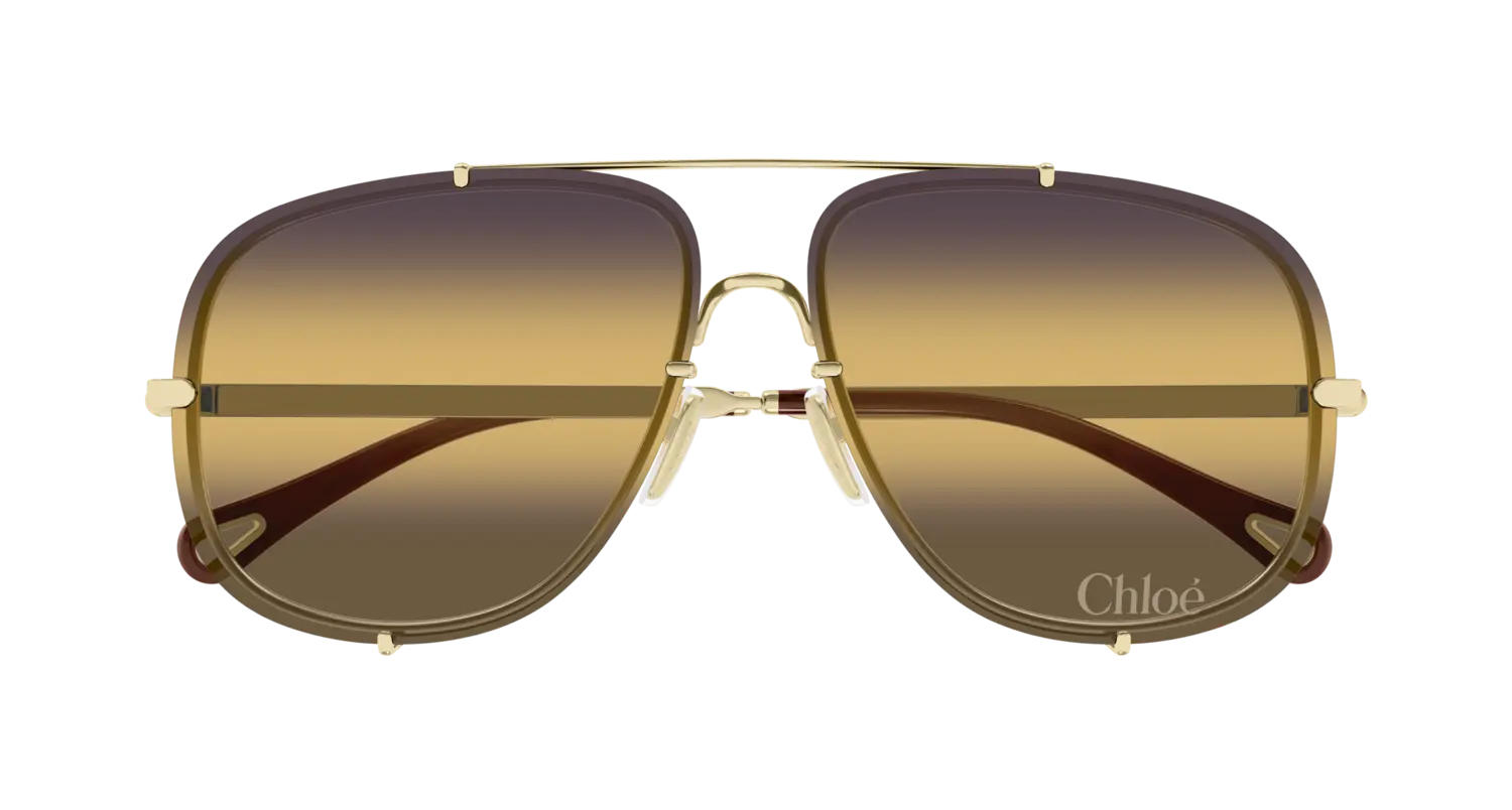 CHLOE CH0348S СОЛНЦЕЗАЩИТНЫЕ - яркая золотая модель с жёлтыми линзами для смелых и солнечных образов. Эффектный дизайн и лёгкий металлический каркас подарят комфорт и внимание к деталям.