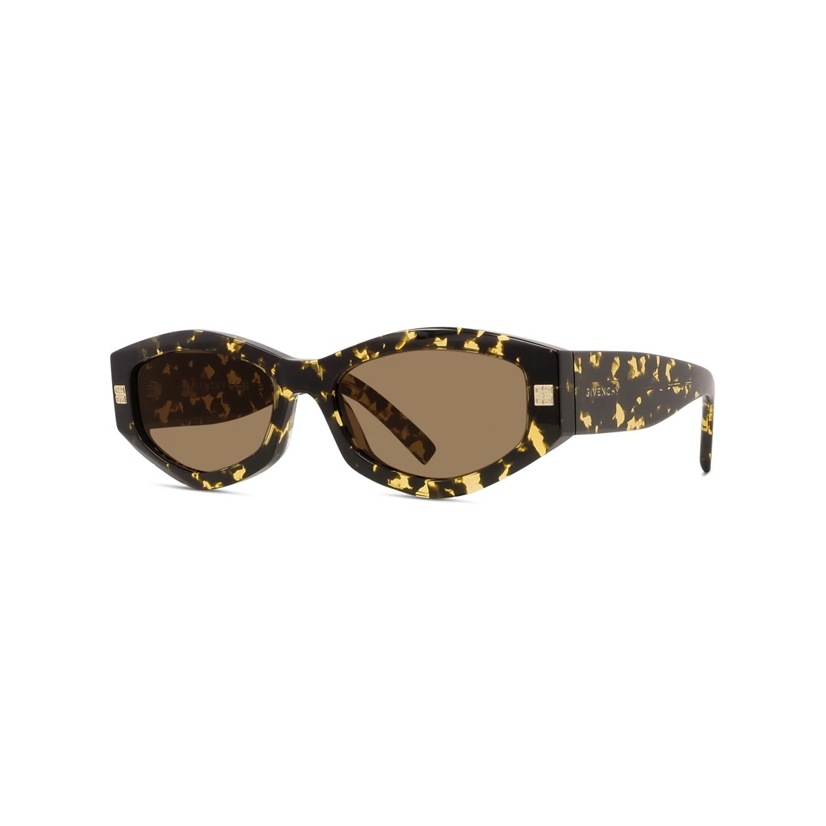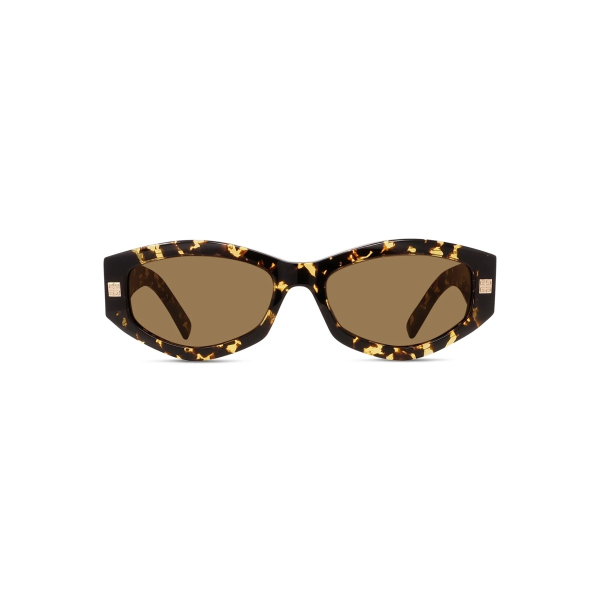 GIVENCHY GV40062I СОЛНЦЕЗАЩИТНЫЕ - женские солнцезащитные очки в теплой havana-раскраске из пластика, которые добавляют роскошной винтажной нотки в образ. Плотный пластик и плавный силуэт подчёркивают женственность и уверенность.