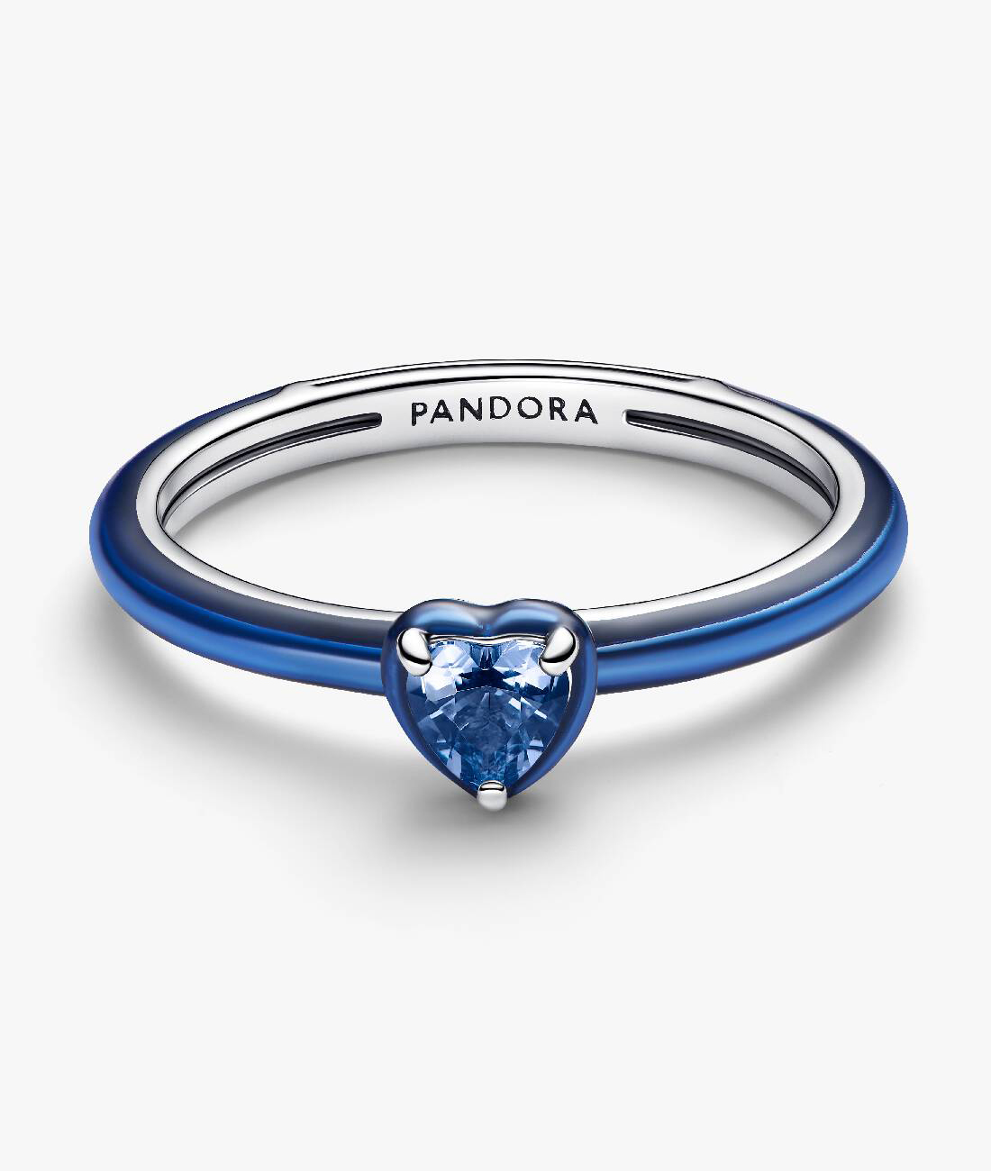 Это кольцо из стерлингового серебра украшено голубым сердцем, обрамленным ореолом и полосой эмали в тон. Символ любви к себе и другим.