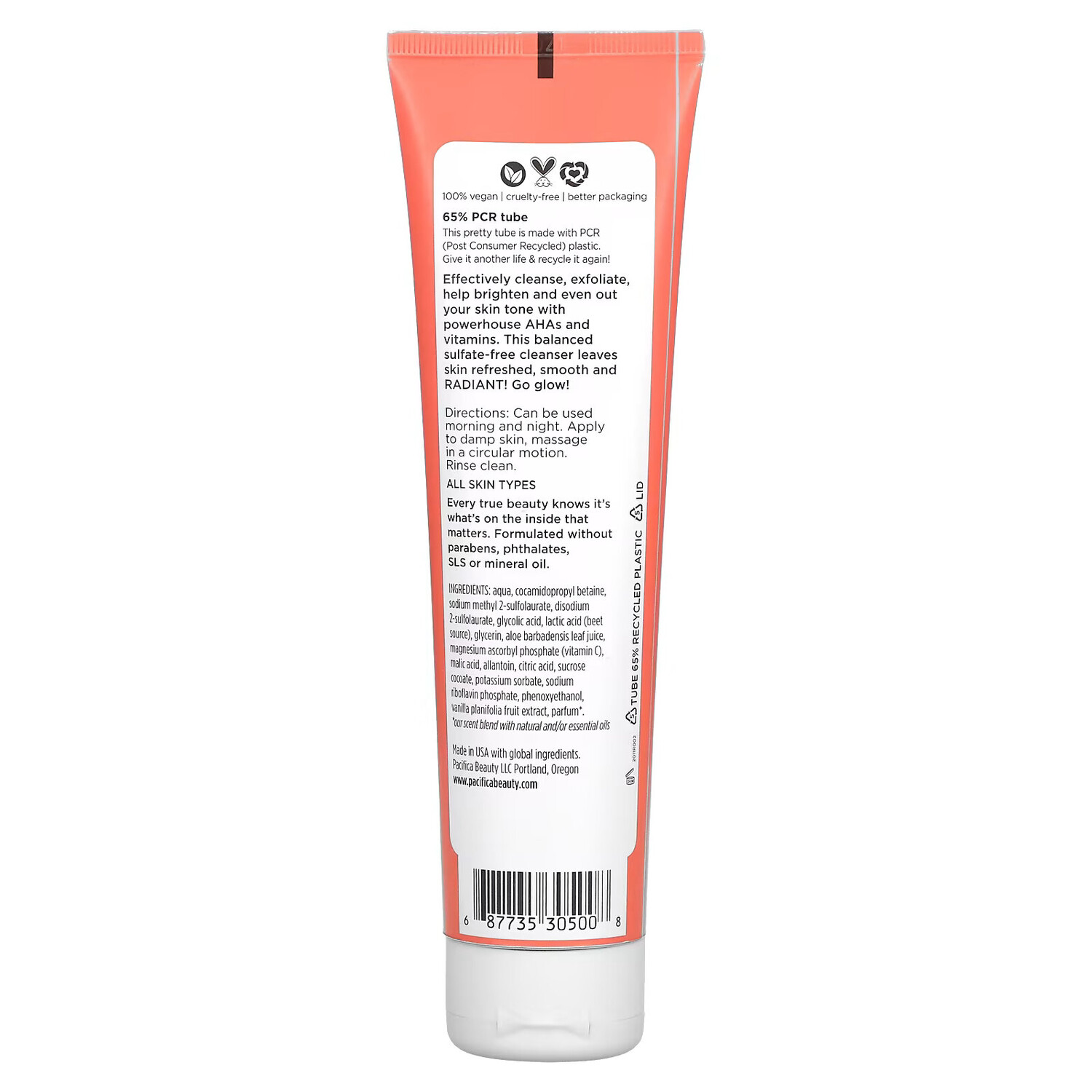 Эффективно очищает, отшелушивает, осветляет кожу и выравнивает ее тон благодаря мощным АГК и витаминам. Это сбалансированное очищающее средство без сульфатов делает кожу свежей, гладкой и сияющей.