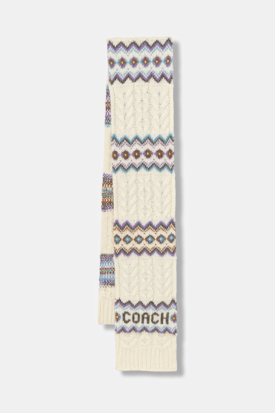 Шарф из коллекции Coach. Изготовлен из плотной шерстяной вязки, высокое содержание шерсти обеспечивает защиту от холода, а добавление полиамида повышает прочность изделия.