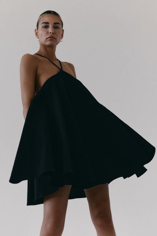 Платье из коллекции MUUV. Изготовлено из гладкой ткани, эта модель отличается исключительной комфортностью благодаря использованию хлопка.