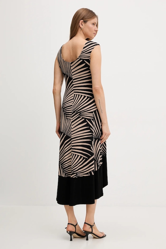 Это платье из коллекции Джозефа Рибкоффа сшито из эластичной трикотажной ткани. Благодаря содержанию полиэстера ткань более устойчива к сминанию.