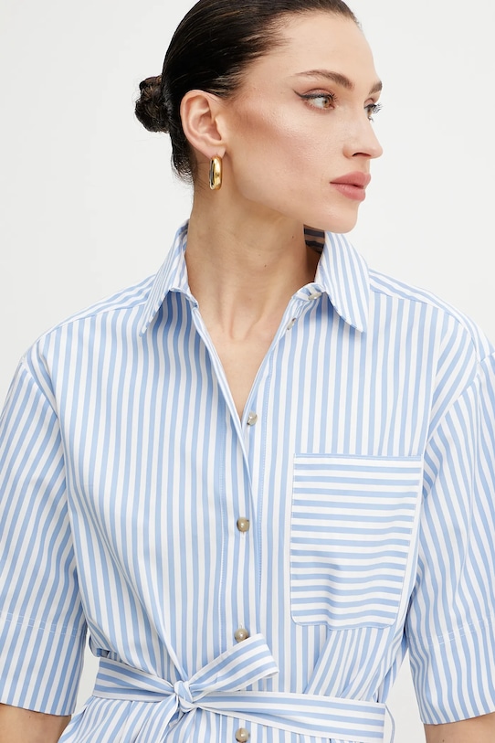 Эта рубашка из коллекции MM by Max Mara изготовлена из тонкой, неэластичной ткани. Модель выполнена из дышащего хлопкового материала.