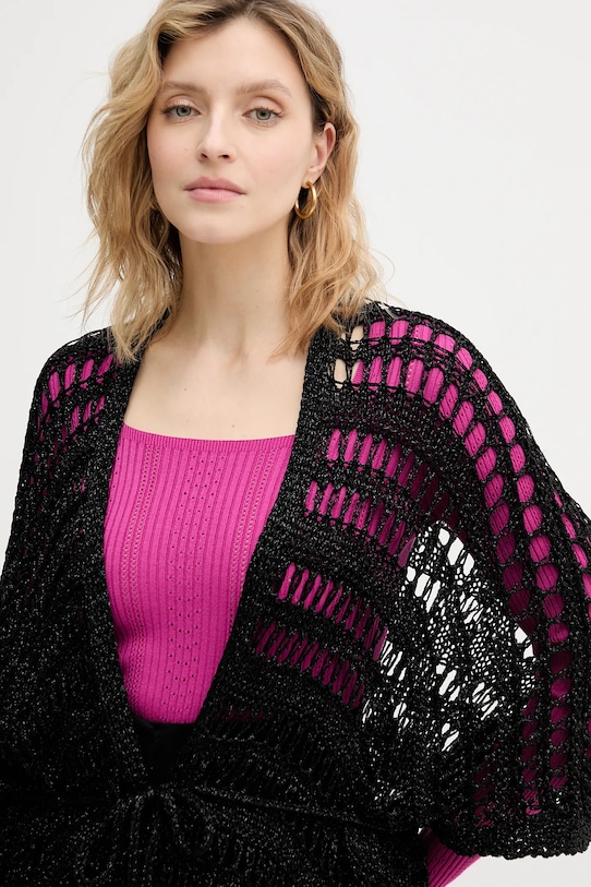 Этот кардиган из коллекции Twinset выполнен из ажурной трикотажной ткани. Он отличается эффектным, переливающимся материалом.