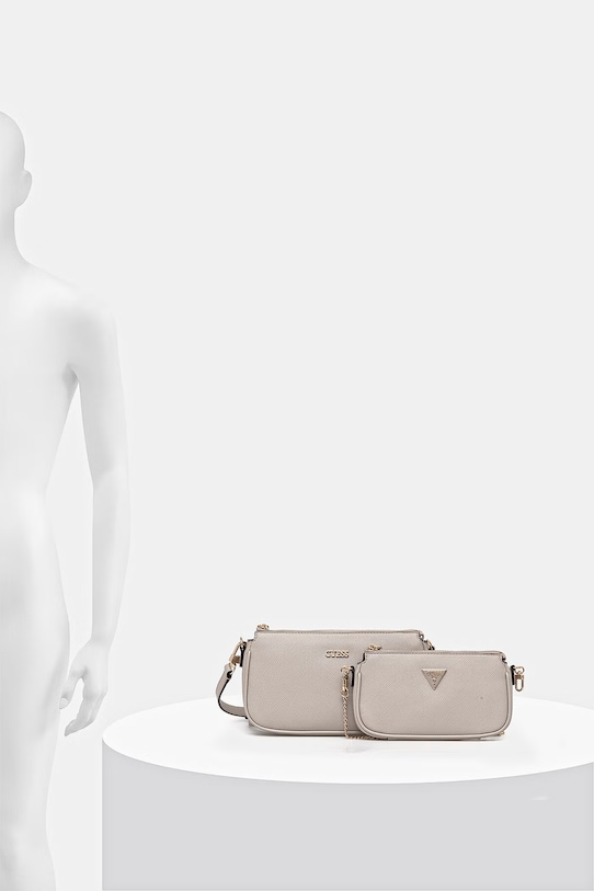 Небольшая сумочка из коллекции Guess. Эта модель с застежкой-пряжкой изготовлена ​​из экокожи. В комплект входит еще одна сумочка меньшего размера.