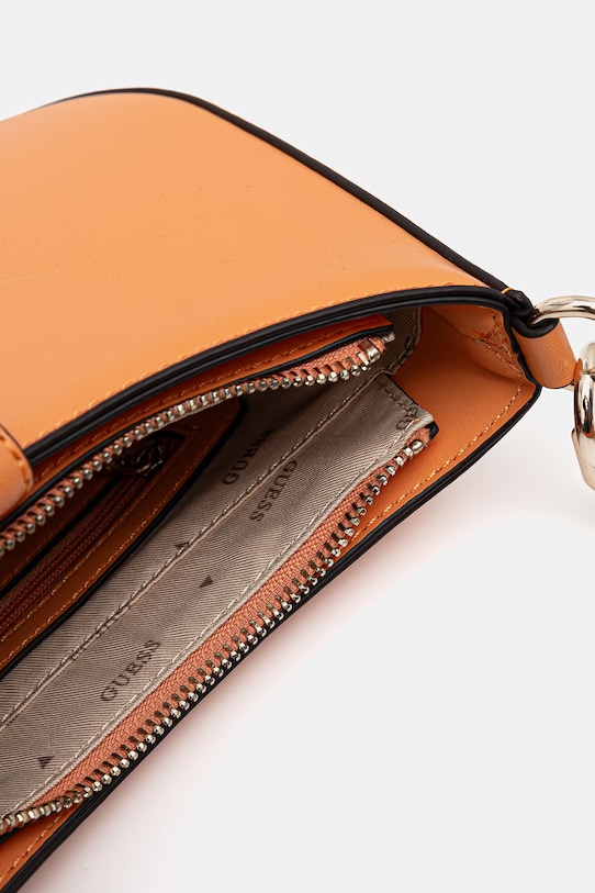 Небольшая сумочка из коллекции Guess. Модель на молнии, изготовлена ​​из экокожи.