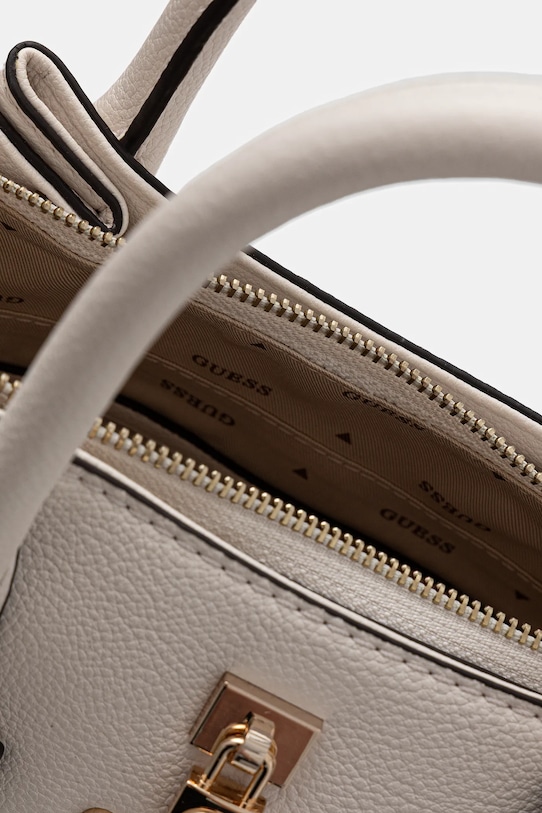 Сумка среднего размера из коллекции Guess. Эта модель на молнии изготовлена ​​из эко-кожи Okobor, созданной из переработанного полиэстера и полиуретана.