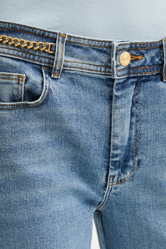 - Модель со стандартной талией, застежка на пуговицу и молнию.