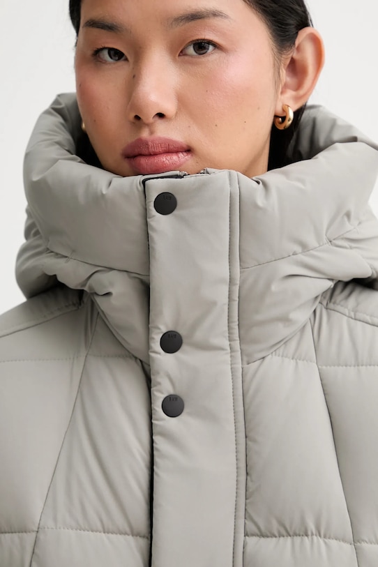 - Высокий воротник и несъемный капюшон обеспечивают дополнительную защиту от холода.