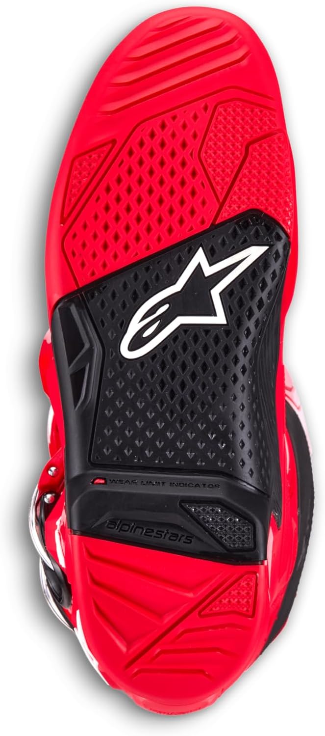 - Подошва оснащена инновационным индикатором предела износа, встроенным в область подножки. Этот слой отображает красный цвет, предупреждая водителя о том, что подошва изношена и нуждается в замене.