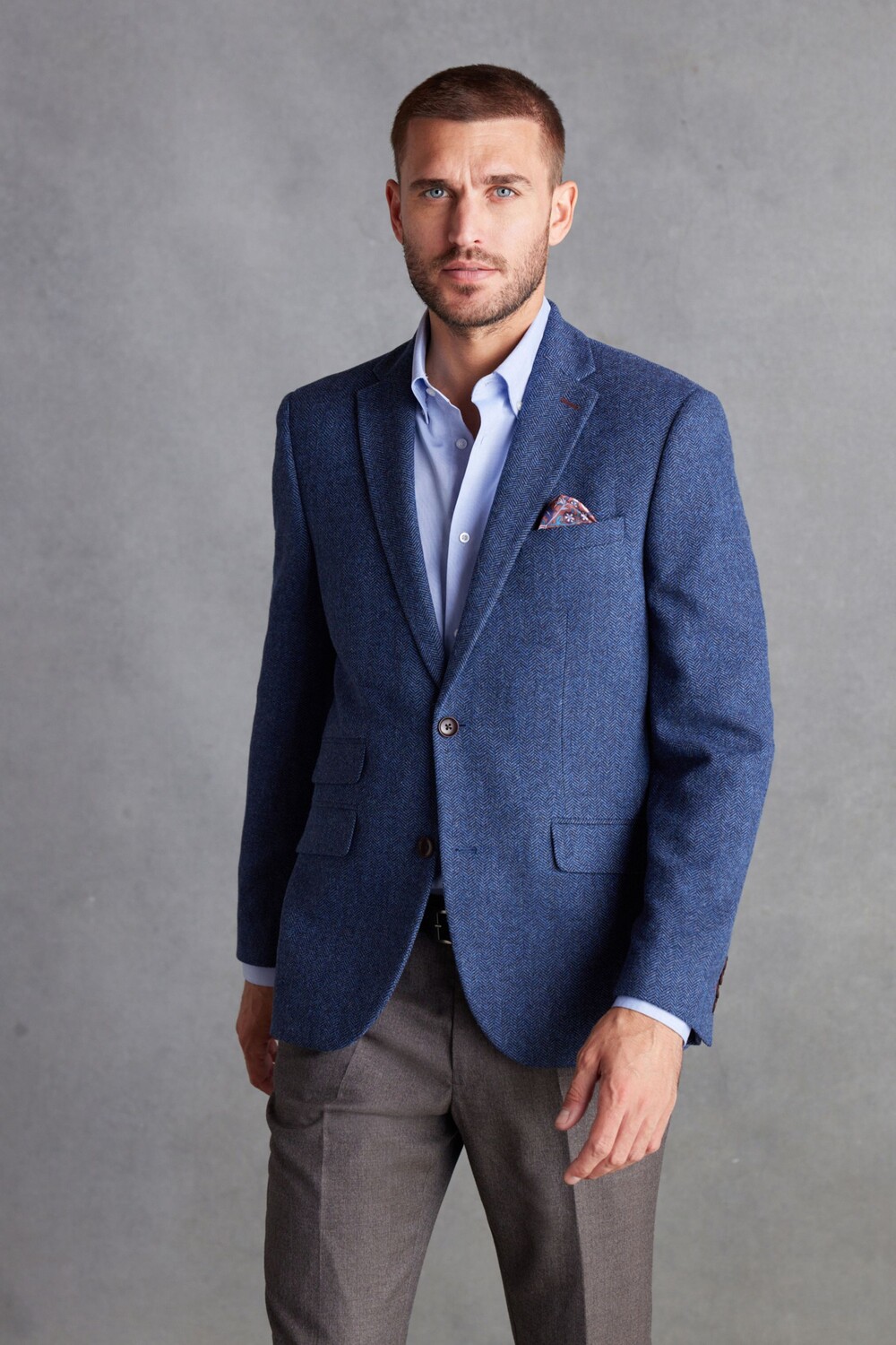 Шерстяной пиджак Nova Fides с узором елочка Next, синий