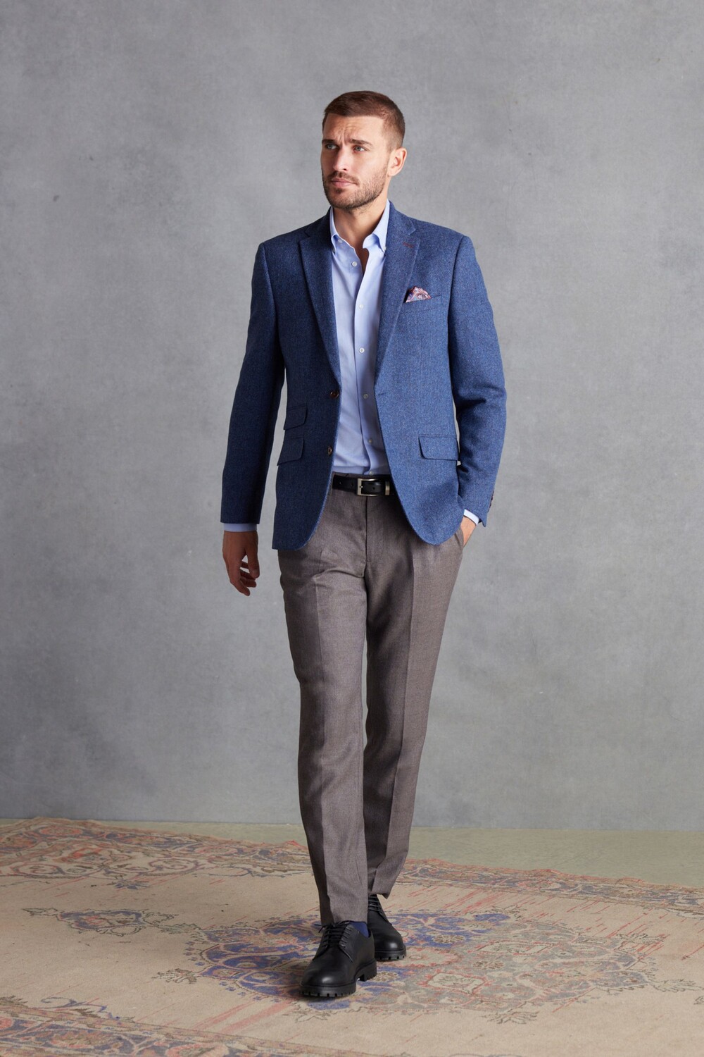 Шерстяной пиджак Nova Fides с узором елочка Next, синий 27 812₽