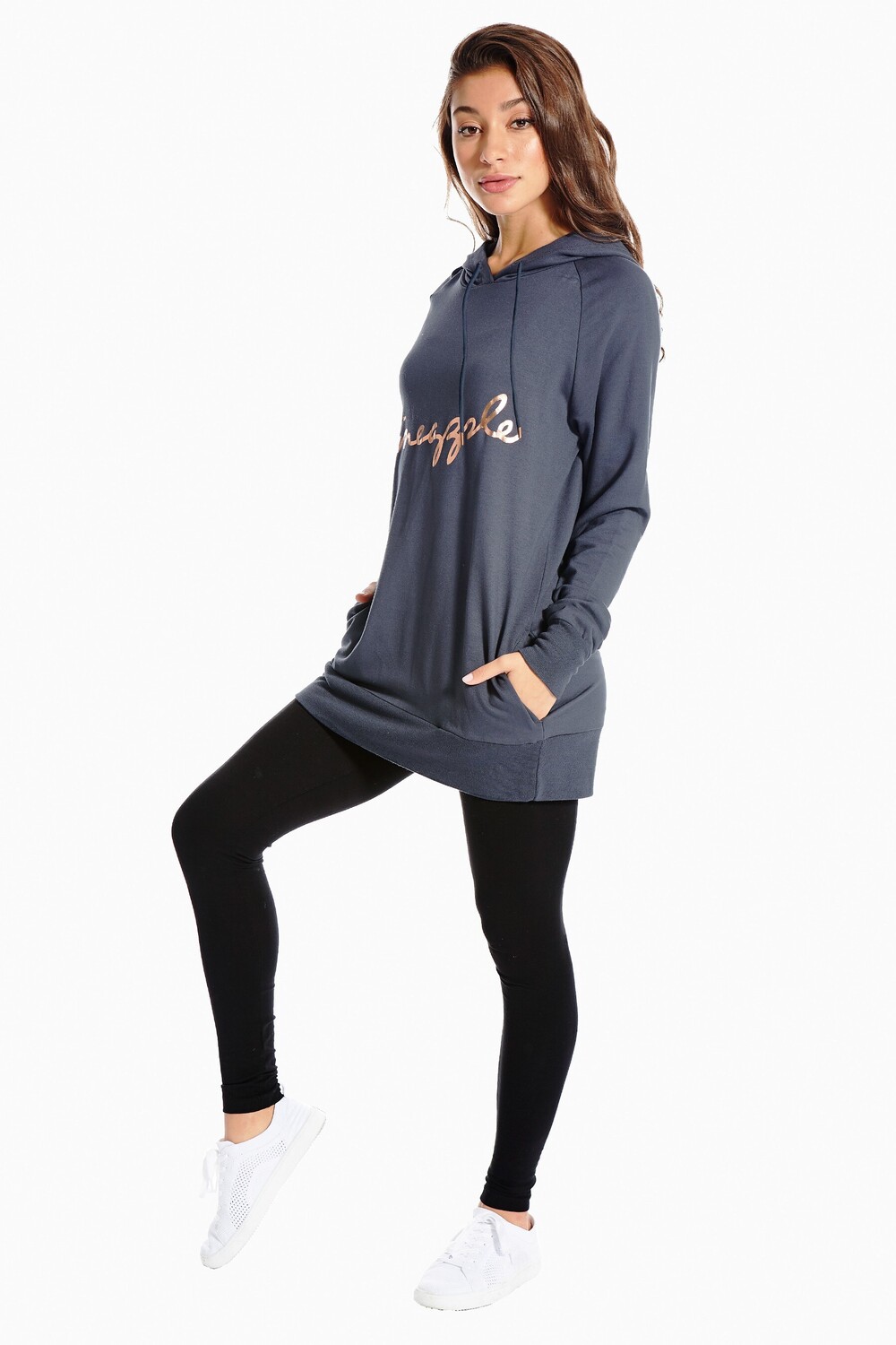 Длинная толстовка с капюшоном с надписью Pineapple, серый