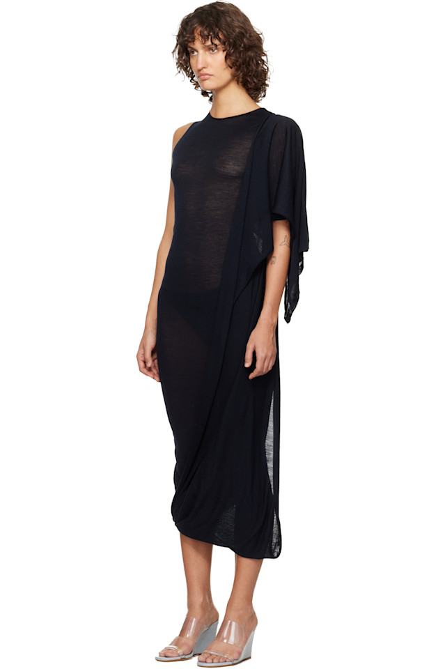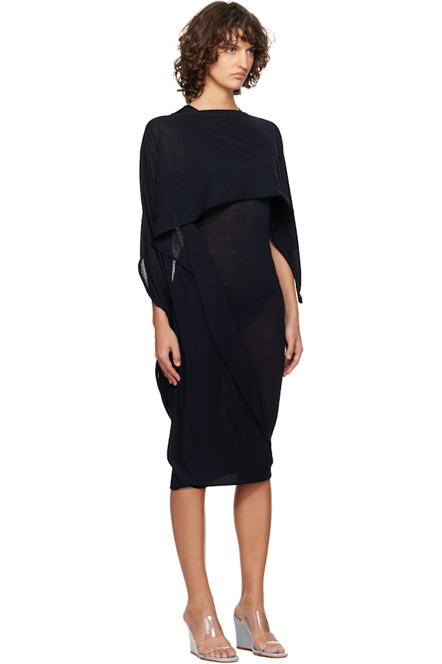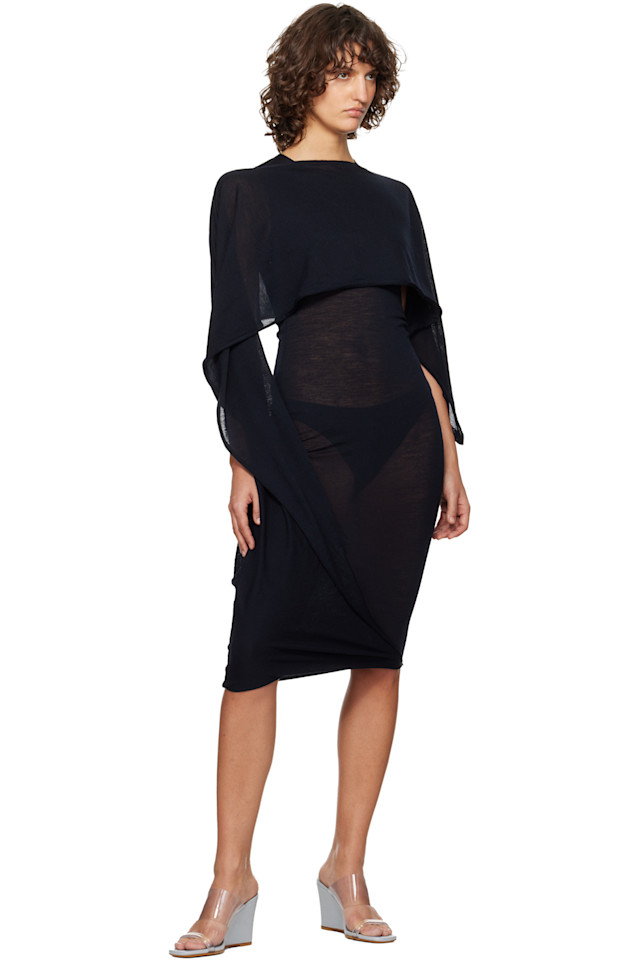 Полупрозрачное трикотажное миди-платье из смеси сверхтонкой мериносовой шерсти.
