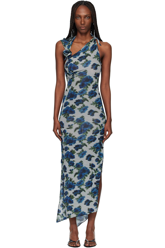 Coperni Темно-Синее платье миди с цветочным принтом